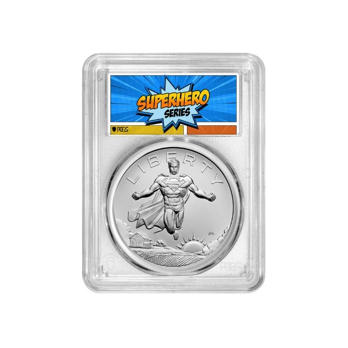 Purchase the 2025 PCGS MS-70 First Day of Issue 1 oz US Superman™ Silver Medal online from SD Bullion.