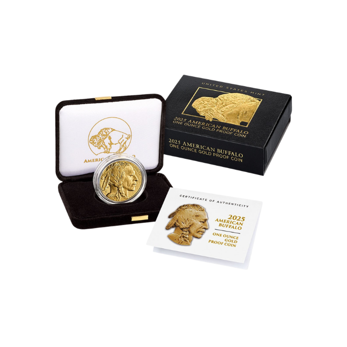 Each 2025-W 1 oz American Gold Buffalo Proof Coin is produced at the West Point Mint, carrying the prestigious “W” mint mark. These proof strikes showcase frosted design elements contrasted against highly polished fields, offering collectors a stunning presentation of one of the Mint’s most iconic designs.