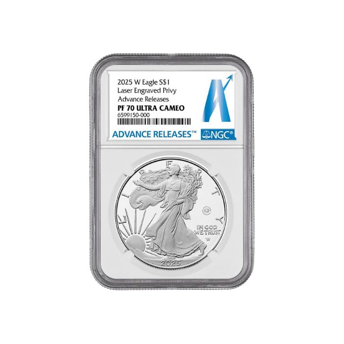 2025-W NGC PF-70 Advanced Releases U.S. Laser Privy 1 oz American Silver Eagle Proof Coin