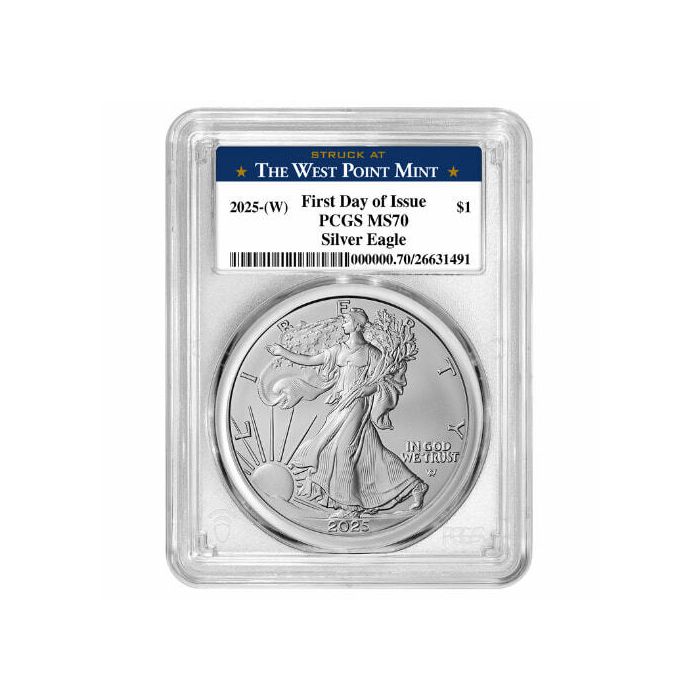 2025-(W) US Silver Eagle PCGS MS-70 First Day of Issue 1 oz Coin - Struck at West Point Label