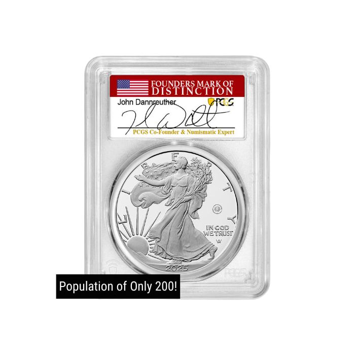 The 2025-W PCGS PR-70 Advanced Releases U.S. Laser Privy Silver Eagle with John Dannreuther Label represents the pinnacle of modern U.S. coinage. With its flawless grade, exclusive early release pedigree, one-year-only privy mark, and a label signed by one of the nation’s most distinguished numismatists, this coin is a must-have for serious collectors and Silver Eagle enthusiasts.