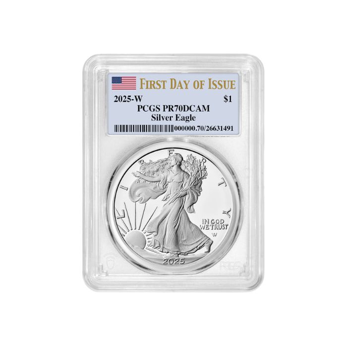 Today, you can acquire 2025-W 1 oz American Silver Eagles graded by PCGS as PR-70 First Day of Issue coins at SD Bullion.