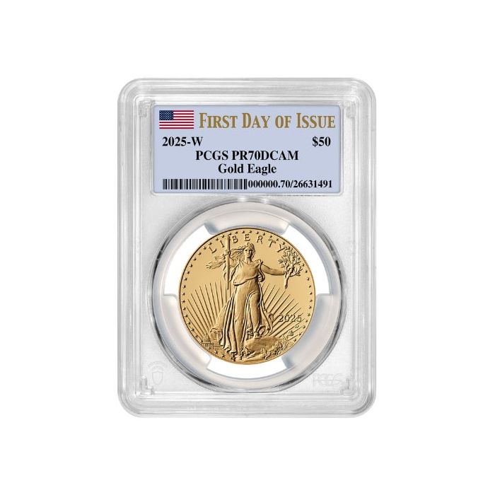 Purchase the 2025-W PCGS PR-70 First Day of Issue Deep Cameo 1 oz American Gold Eagle Proof Coin online 24/7 from SD Bullion.