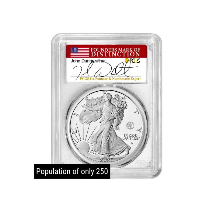 Purchase the 2025-W PCGS PR-70 First Day of Issue US Army Privy 1 oz American Silver Eagle Proof Coin - John Dannreuther Label online from SD Bullion.