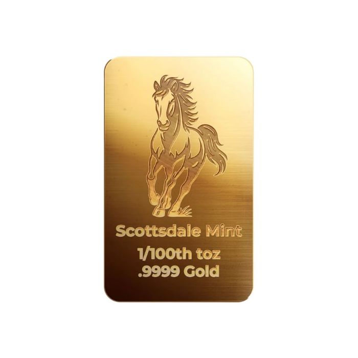 Today, you can acquire the 2026 1/100 oz Lunar Horse Gold Bar from the Scottsdale Mint’s Lunar Series at SD Bullion.