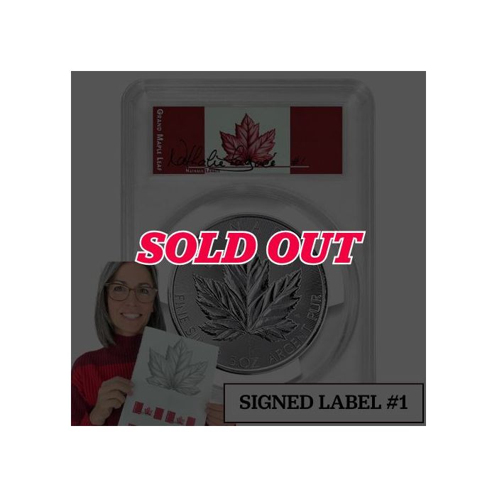 Buy the 2026 5 oz PCGS Gem BU Trial Strike Canadian Silver Grand Maple Leaf Coin – Nathalie Lagacé Label #1 at SD Bullion