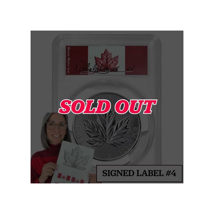 Buy the 2026 5 oz PCGS Gem BU Trial Strike Canadian Silver Grand Maple Leaf Coin – Nathalie Lagacé Label #4 at SD Bullion