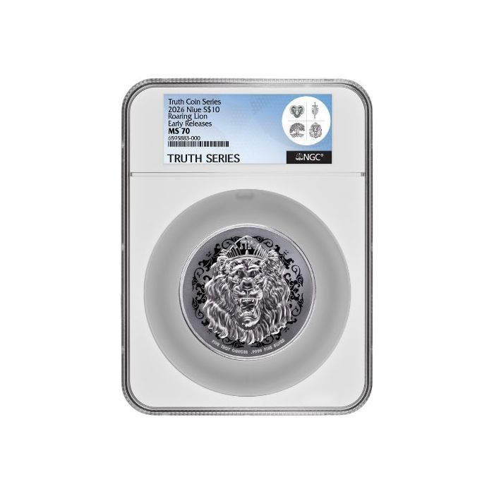 The 2026 5 oz Roaring Lion Silver Coin – NGC MS-70 Early Releases continues the powerful legacy of the Truth Series, an exclusive collaboration between SD Bullion and the Sunshine Mint. Each annual release in the series features intricate artwork paired with a hidden biblical message, making these coins distinctive collectibles with layered meaning.
