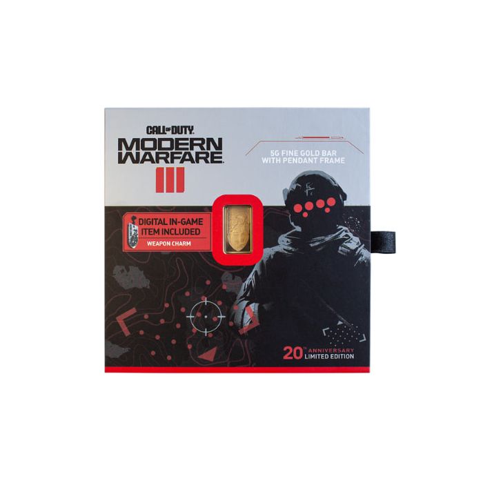 Join the action with these 1 oz Call of Duty: Modern Warfare Proof-Like Gold Bars. Purchase now while supplies last, and you will receive a pendant frame and an in-game bonus item.