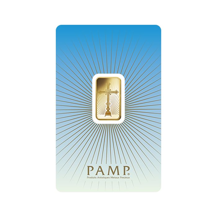 gold bars' pure gold content and the PAMP Suisse name already make them perfect for investors who want to accumulate stores of pure gold at relatively lower premiums over spot. However, their gold cross design, honoring Christianity, makes them great gifting items and collectibles as well!