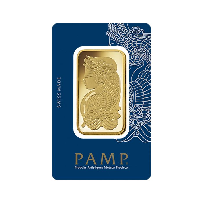 On the other hand, the reverse sides feature the famous PAMP Suisse logo. Furthermore, the logo is accompanied by the purity and weight of gold used to strike the product, the assayer's mark, and the unique serial number assigned to the gold bar.