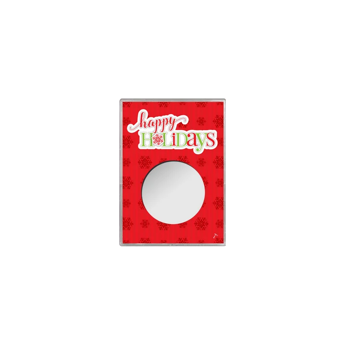 This coin case has arrived just in time for the holidays! When paired with one of our many Silver American Eagle Coins, this makes the perfect holiday gift for anyone on your list. Designed to fit a single Silver Eagle, this case will seal around the coin protecting it from general handling. This particular case features a red holiday themed background along with the words "Happy Holidays" displayed on the front.