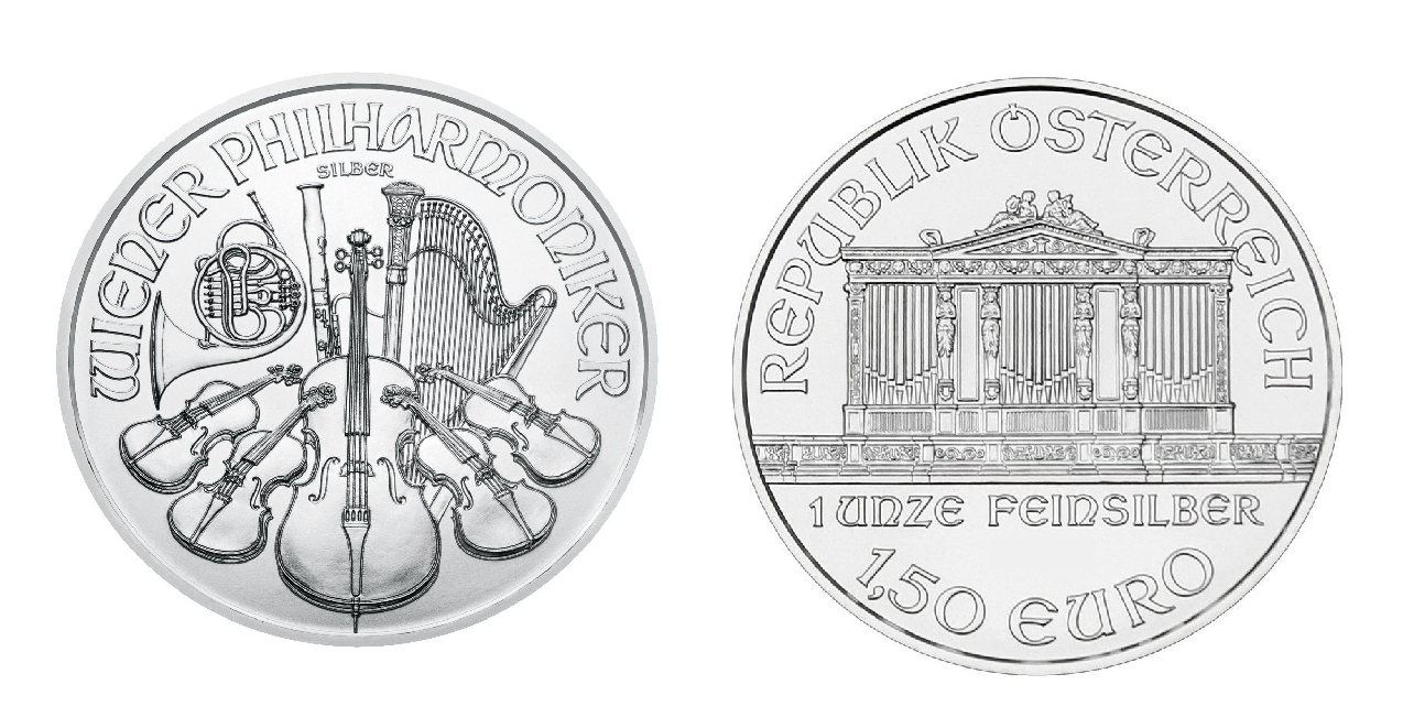 The Austrian Silver Philharmonics is one of the most beautiful top silver coins produced by the Austrian Mint. This masterpiece of European coins, launched in 2008, features the same award-winning Thomas Pesendorfer design in gold and silver versions.