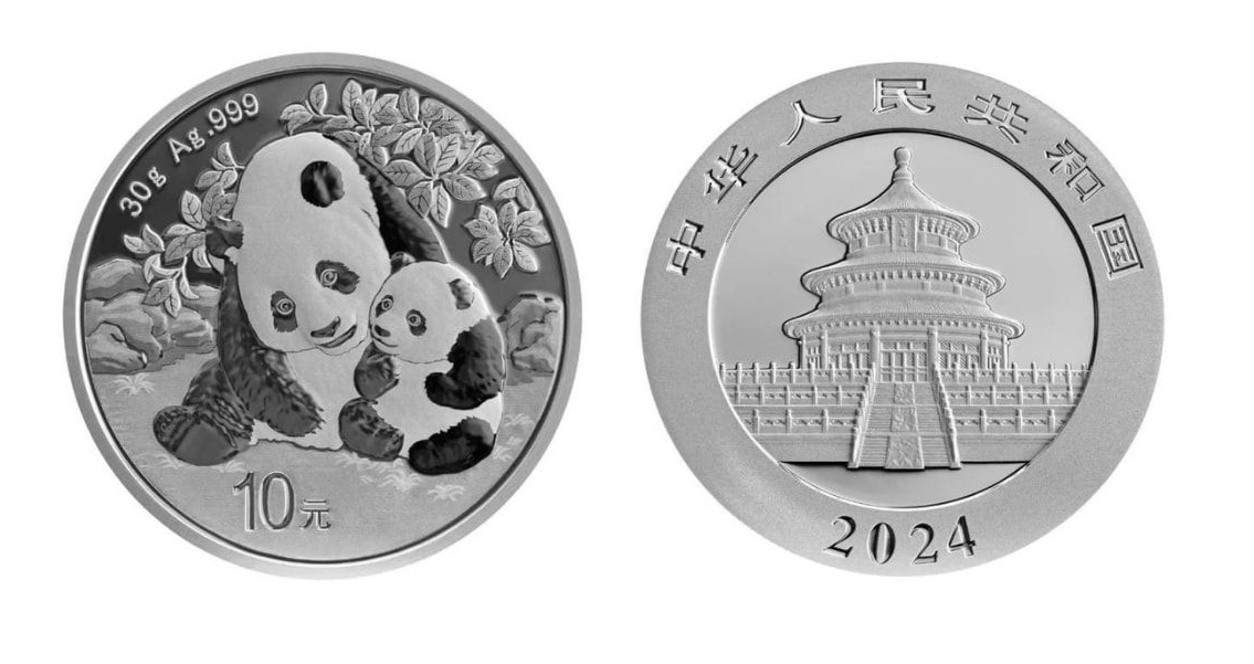 The obverse of the Chinese Silver Panda coins depicts giant pandas in their natural habitat, and the imagery changes each year, making them a lovely collection. The coin's weight, metal content, and fineness description - “30 gr Au .999” - are aside, and the face value of 10 Yuan is usually above the image.
