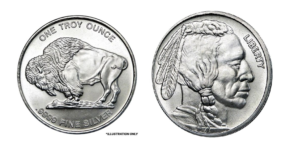A 1 oz. 999 fine silver round inspired by the classic Buffalo Nickel design, featuring a Native American profile on the obverse and an American Bison on the reverse.