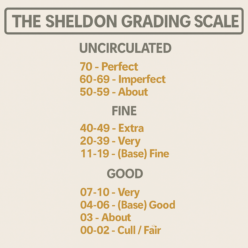 The Sheldon Scale is a 1-70 grading scale used by PCGS and NGC to evaluate a coin’s condition, with 70 being a perfect coin.