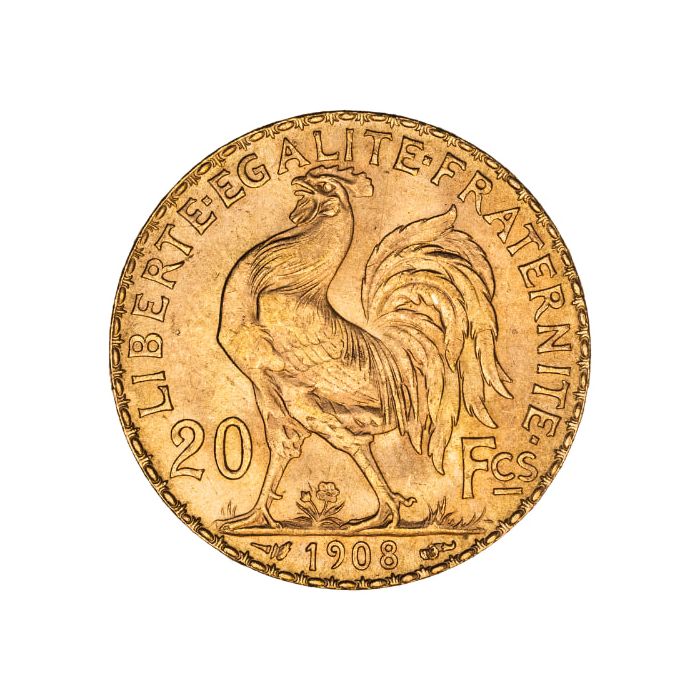 French 20 Franc Rooster gold coins are among the most sought-after collectibles worldwide. The Paris Mint produced them briefly, between 1899 and 1914, using a 90-10 alloy of gold and copper.
