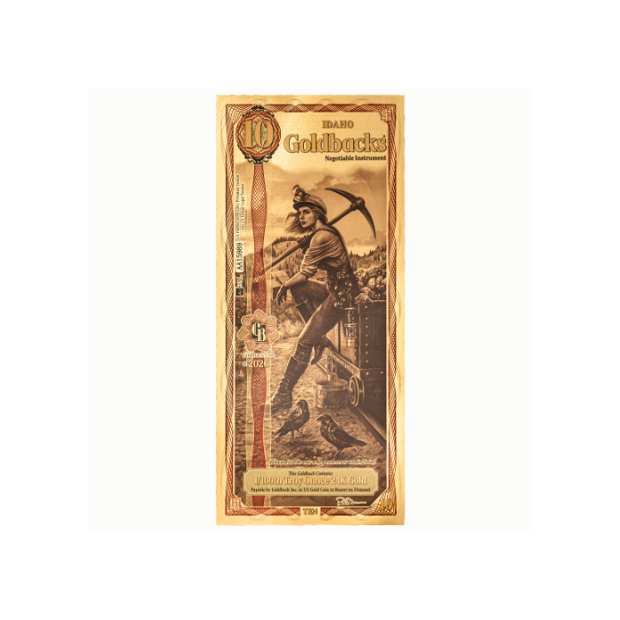 The Gold Aurum 24K Idaho 10 Goldback Note is the ninth release in the Aurum Mint’s celebrated Goldback Series, a line of voluntary local currencies crafted with embedded 24-karat gold. While not recognized as federal legal tender, Goldbacks may be accepted by participating merchants based on their intrinsic value. Following prior releases from Utah, Nevada, New Hampshire, Wyoming, South Dakota, Florida, Oklahoma, and Arizona, the Idaho 10 Goldback captures the state’s natural beauty and historical significance.