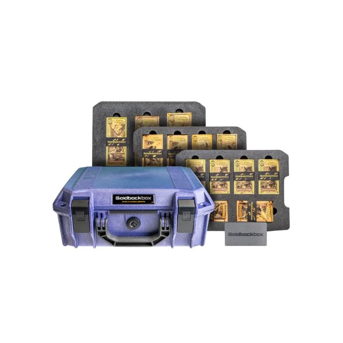 The Goldback Box consists of a premium clamshell, a vault-friendly, crushproof, tamper-evident, and weather-resistant case. It comfortably houses: