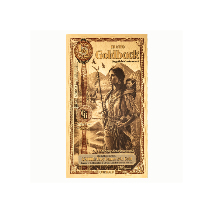 Goldbacks are foil-like notes made by layering 24-karat gold within a durable polymer substrate. They are used as a voluntary currency in select regions and are valued for both their bullion content and artistic presentation. Each denomination corresponds directly to its gold weight, offering a flexible and visually striking way to accumulate fractional gold. Idaho joins Utah, Nevada, New Hampshire, Wyoming, South Dakota, Florida, Oklahoma, and Arizona in issuing these uniquely crafted notes.