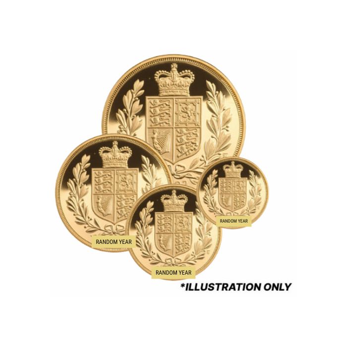 Today, you can purchase a 4-Coin Set of Gold Sovereign coins in capsules from SD Bullion. They may be of varied mintage, depending on our availability.