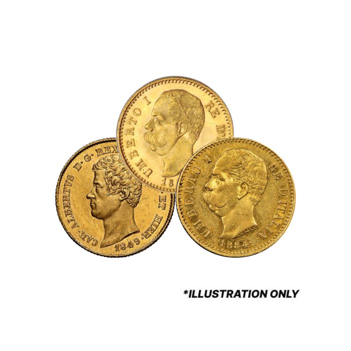 Add these Italian 20 Franc Gold Coins to your shopping cart now. If you require further information, contact us through our web chat feature or at 1(800)294-8732.