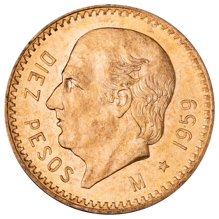 Purchase these collectible gold coins at the lowest premiums over the spot gold price! Enjoy the best service online, fast and discreet shipping. Contact us now to guarantee your investment in 10 Mexican Pesos gold coins!