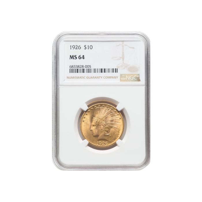 Today, SD Bullion offers 1926 $10 Indian Gold Eagle Coins, sealed in NGC slabs and certified as MS-64 samples.