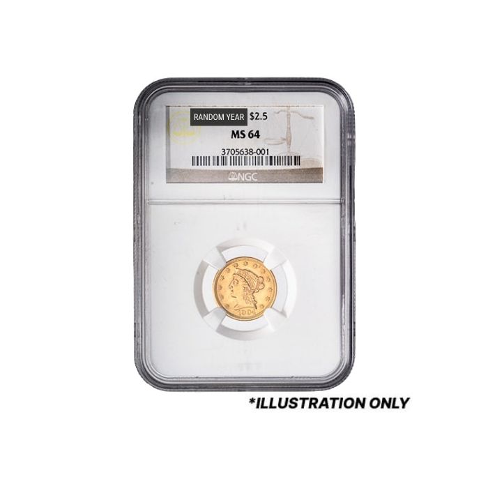 NGC MS-64 $2.50 Liberty Quarter Eagle Gold Coin - Random Year