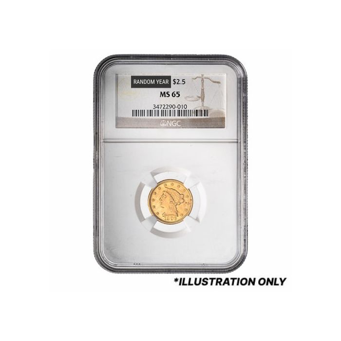 NGC MS-65 $2.50 Liberty Quarter Eagle Gold Coin - Random Year