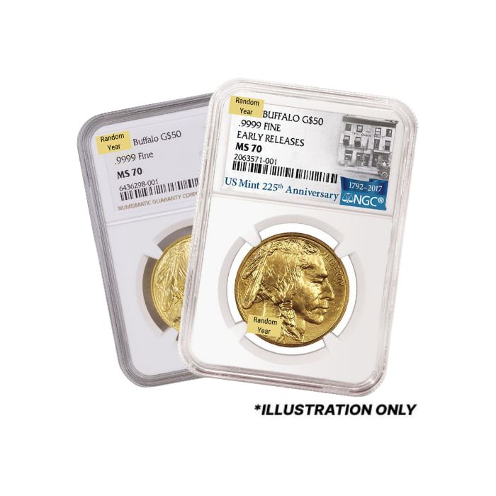 SD Bullion guarantees clients receive an authentic 1 oz American Gold Buffalo Coin, sealed by NGC as MS-70 samples. These coins are randomly selected according to our inventory availability at the time of shipping, so they may have varied mintages.