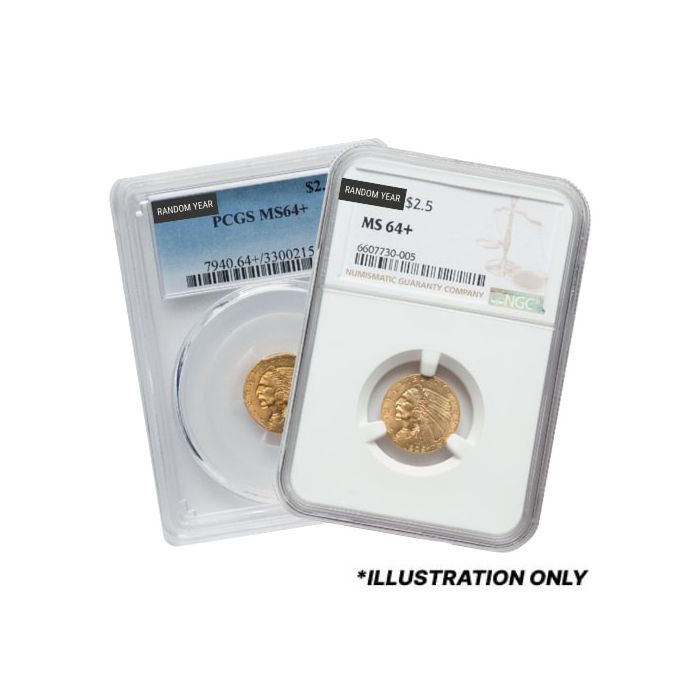 NGC/PCGS MS-64+ $2.50 Indian Head Quarter Eagle Gold Coin - Random Year