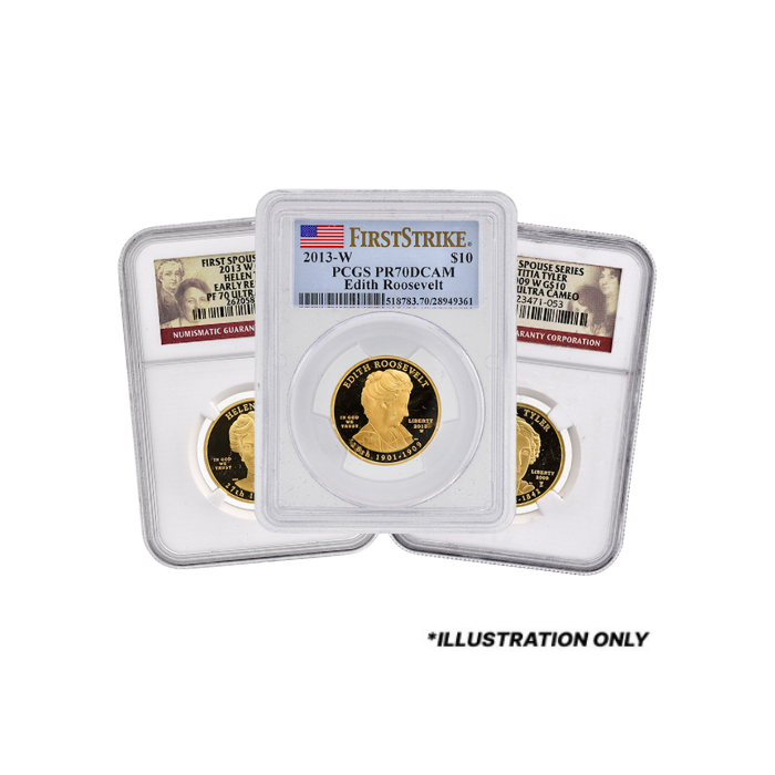 Expand your collection by adding Random 1/2 oz American First Spouse Gold Proof Coins certified as PR/PF-70 by the NGC or the PCGS Graded Gold Coins.