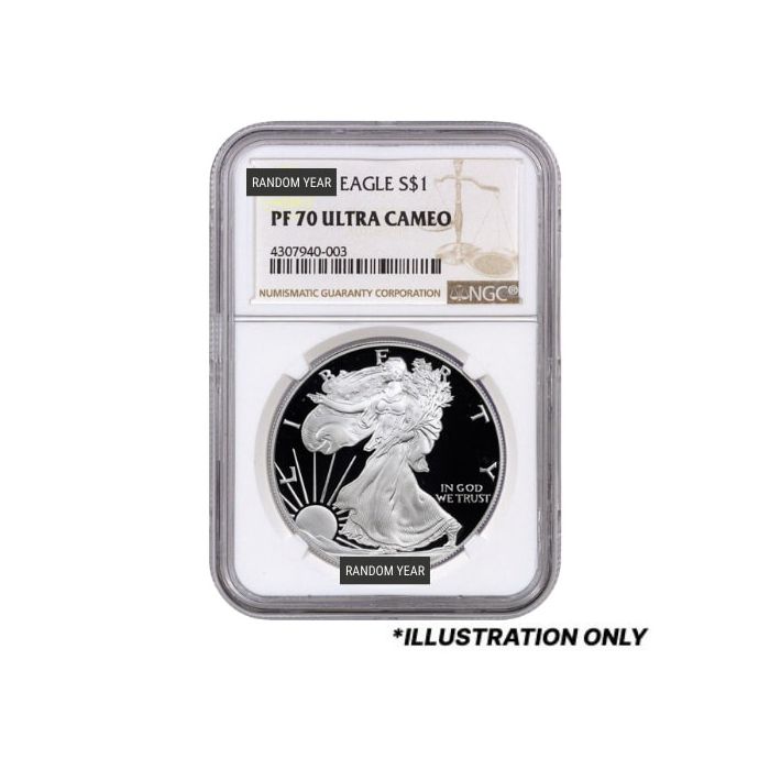 NGC PF-70 1 oz American Silver Eagle Proof Coin - Random Year