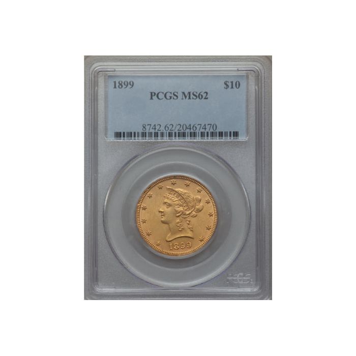Today, you can acquire at SD Bullion 1899 $10 Liberty Eagle Gold Coins sealed and certified by PCGS as MS-62 samples.