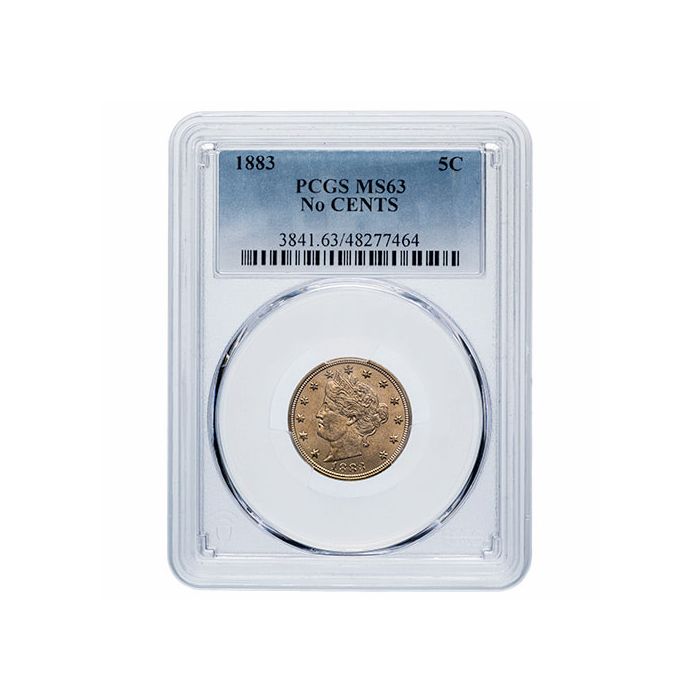 Shop 1883 No Cents Liberty Head V Nickel Coins online from SD Bullion. The coins are sealed and certified by the PCGS as MS-63.