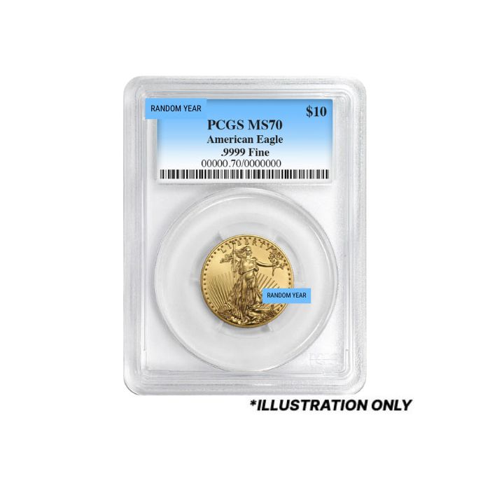 Today, SD Bullion offers 1/4 oz American Gold Eagle Coins sealed by the PCGS and certified as perfect MS-70 coins. However, they may be of several mint years, randomly selected from our inventory.