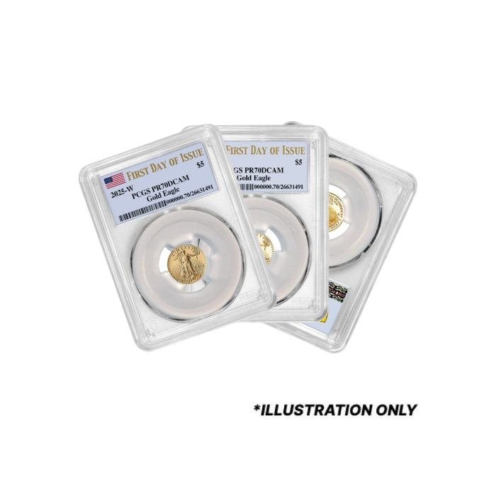 SD Bullion ensures authentic 1/10 oz American Gold Eagles Proof coins, sealed and certified by PCGS as PR-70 coins. However, according to our inventory availability at the time of shipping, they may have varied mintages.