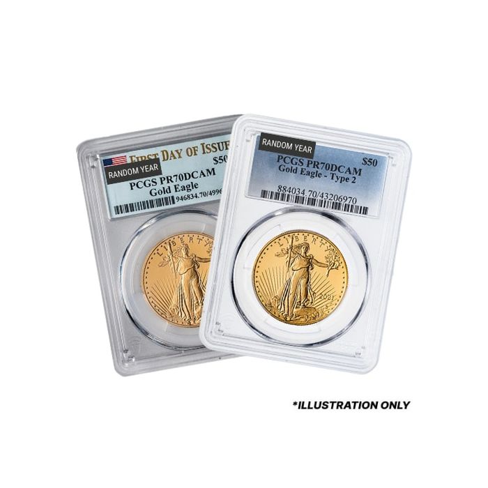 SD Bullion ensures clients receive an authentic 1 oz Gold American Eagles Proof coin sealed and certified by PCGS as a PR-70 sample. However, mintage and design are assorted, depending on our inventory availability at shipping time.