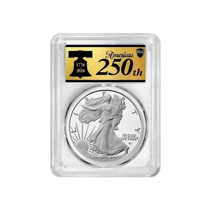 The PCGS PR-70 First Day of Issue 2026-P 1 oz American Silver Eagle Congratulations Proof - 250 Label celebrates a historic milestone in American coinage with a flawless proof strike and a special commemorative label. Released during the 250th Anniversary of American Independence, this coin pairs the prestige of the American Silver Eagle series with enhanced collectible appeal through its limited Congratulations Set presentation and exclusive 250 label.