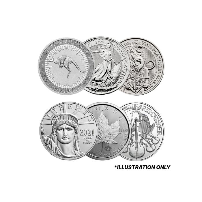Investors and collectors now have the opportunity to acquire 1 oz Platinum Coins at a competitive price, with the design chosen at our discretion. Each coin is struck from 1 troy ounce of .9995 fine platinum and carries full legal tender status, backed by its issuing government.