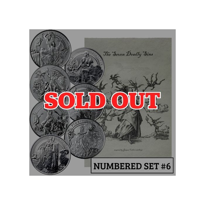 - Each set contains all seven 5 oz silver Reverse Proofs from The Awakening: Seven Deadly Sins Series;