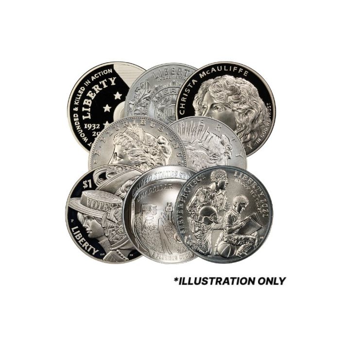 SD Bullion now offers an assortment of these modern commemorative $1 silver coins, minted from 2019 onward. Each contains .999 fine silver and may arrive in either bullion or proof format, selected at random from available inventory.